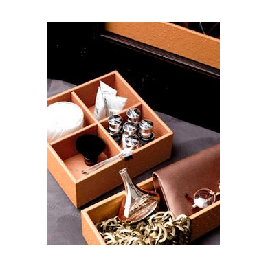 Ящик внутренний для предметов (4 отделения), 22*22*h8, эко-кожа/цвет - конъяк