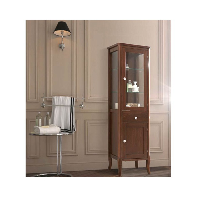 Пенал-витрина напольный, петли справа, 46.5*h160.5, орех