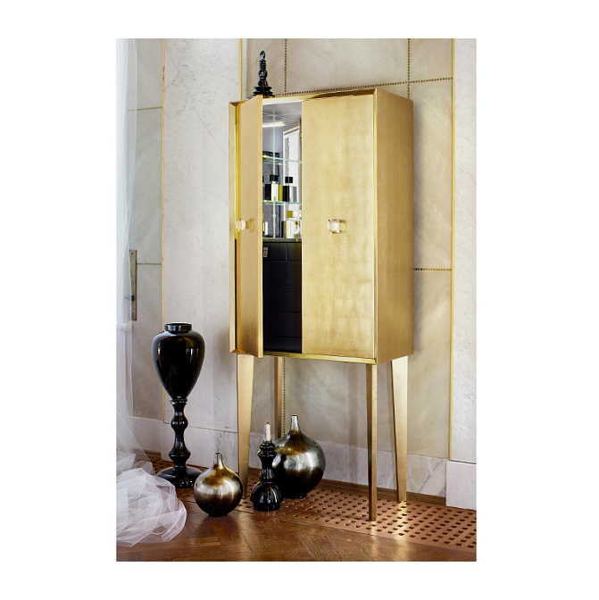 Шкаф (2 дверки, 3 стекляные полки, 1 выдв.ящик), 72*37.5*h188, корпус и фасад - черный глянец (F1004 / K0127), ручка - хром, кристалл (G0097)