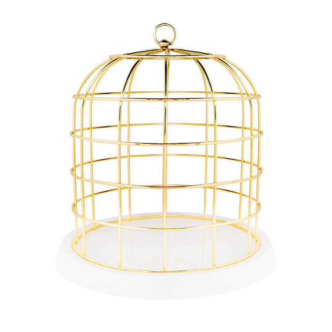 Декор "Клетка" d34*h36, металл, цвет золото, база - фарфор, цвет белый