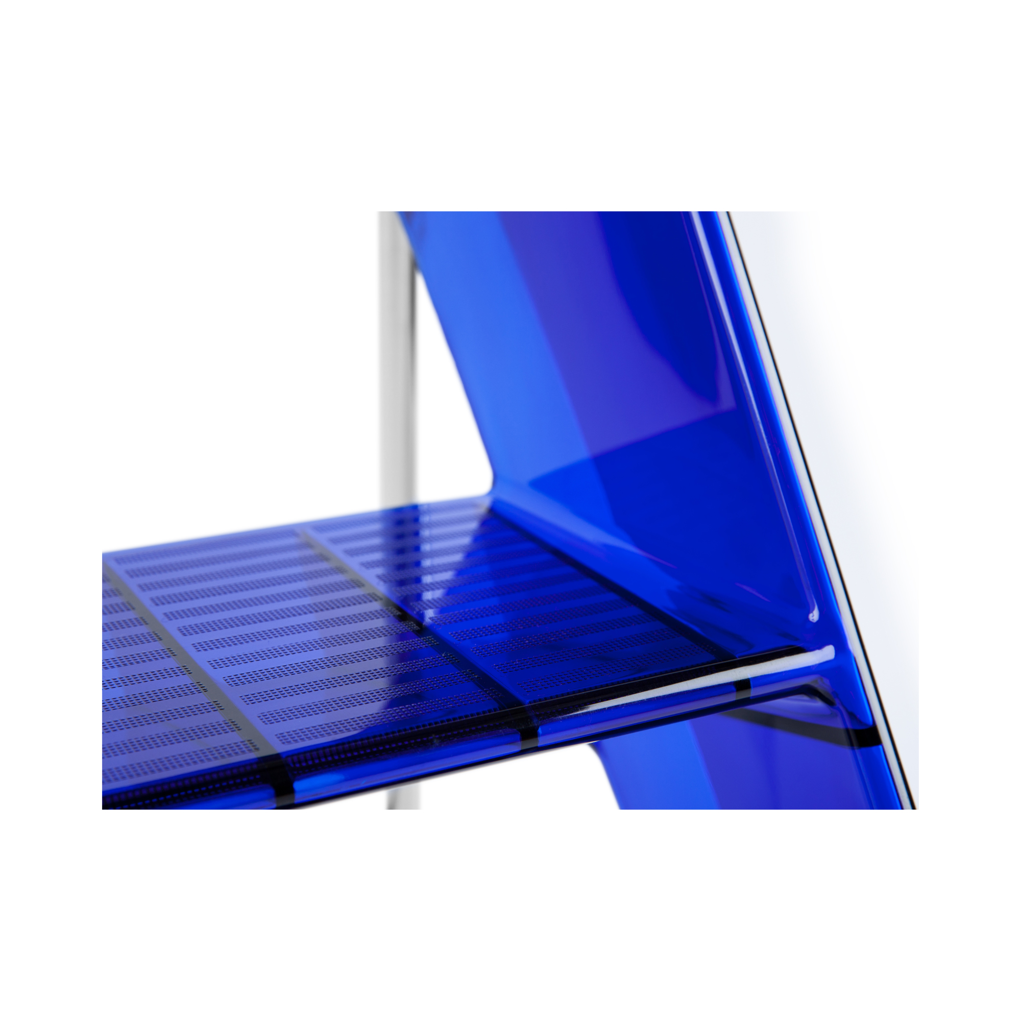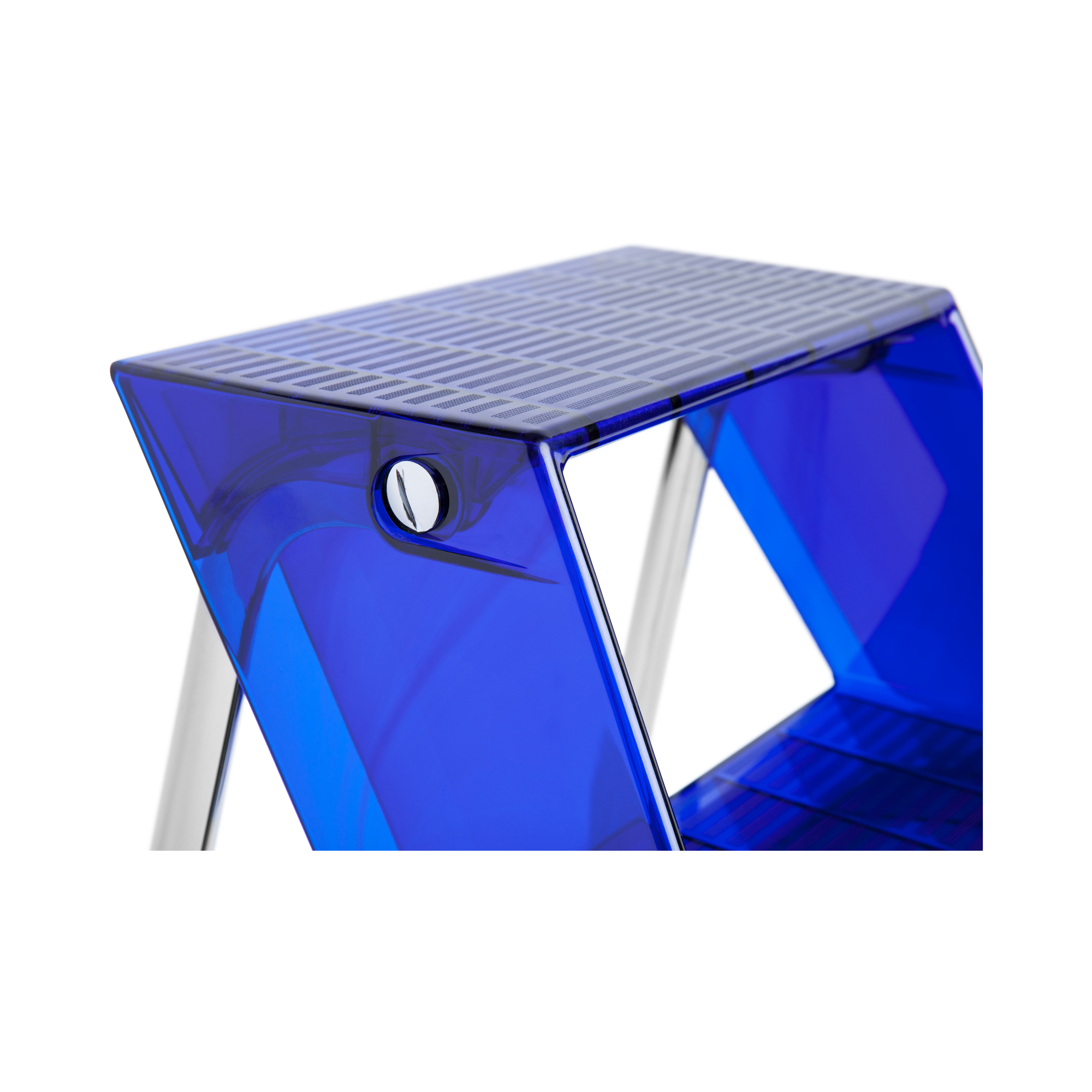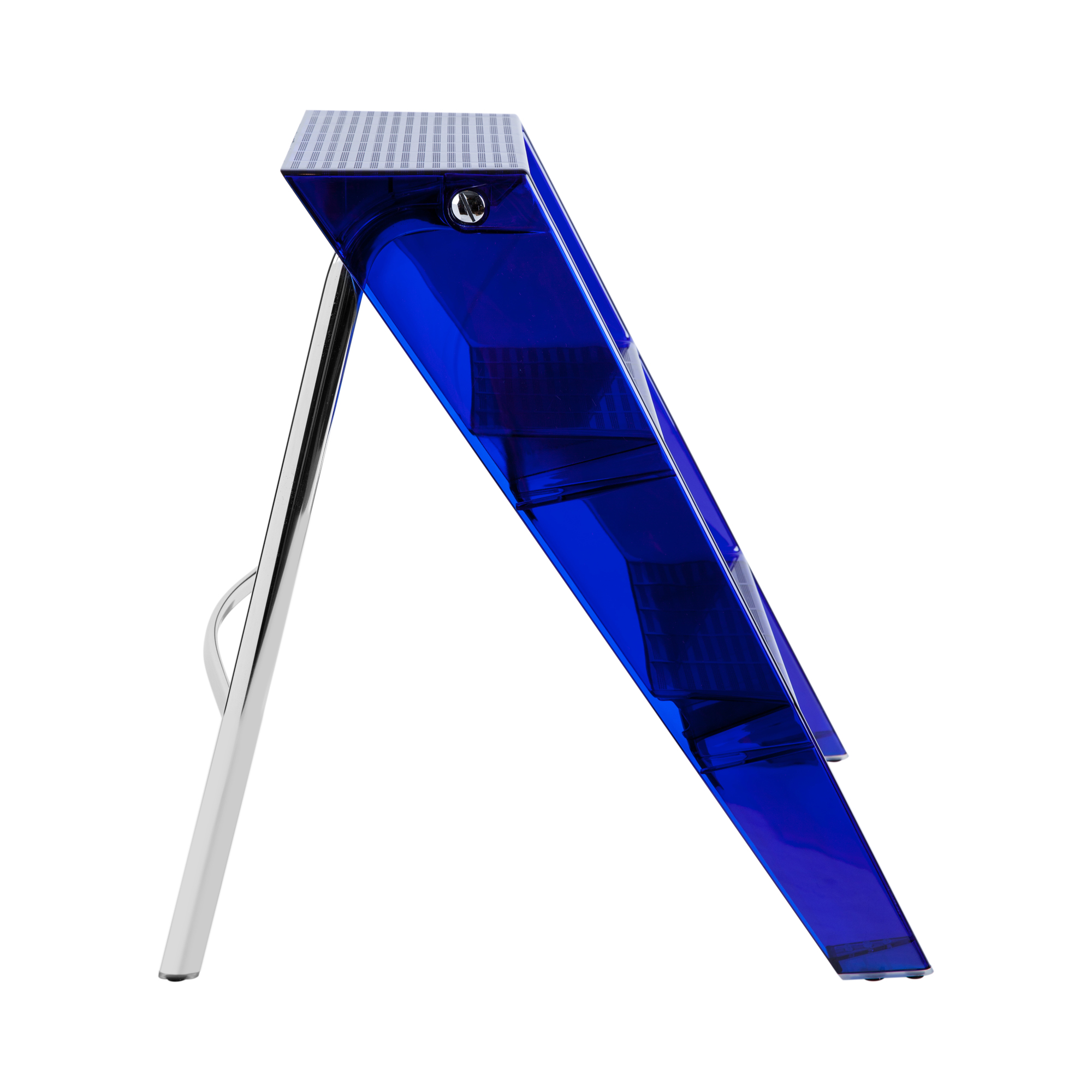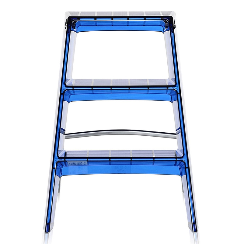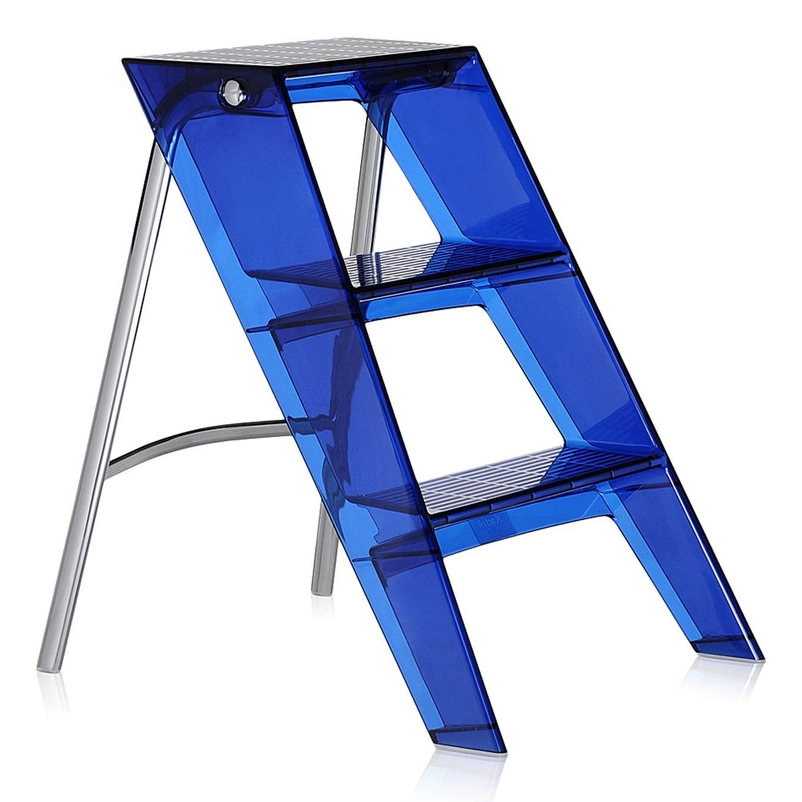Яркая синяя стремянка Upper добавит цвет и настроение в любой интерьер. Основание и ступени выполнены из особопрочного прозрачного пластика, металлическая опора складывается.