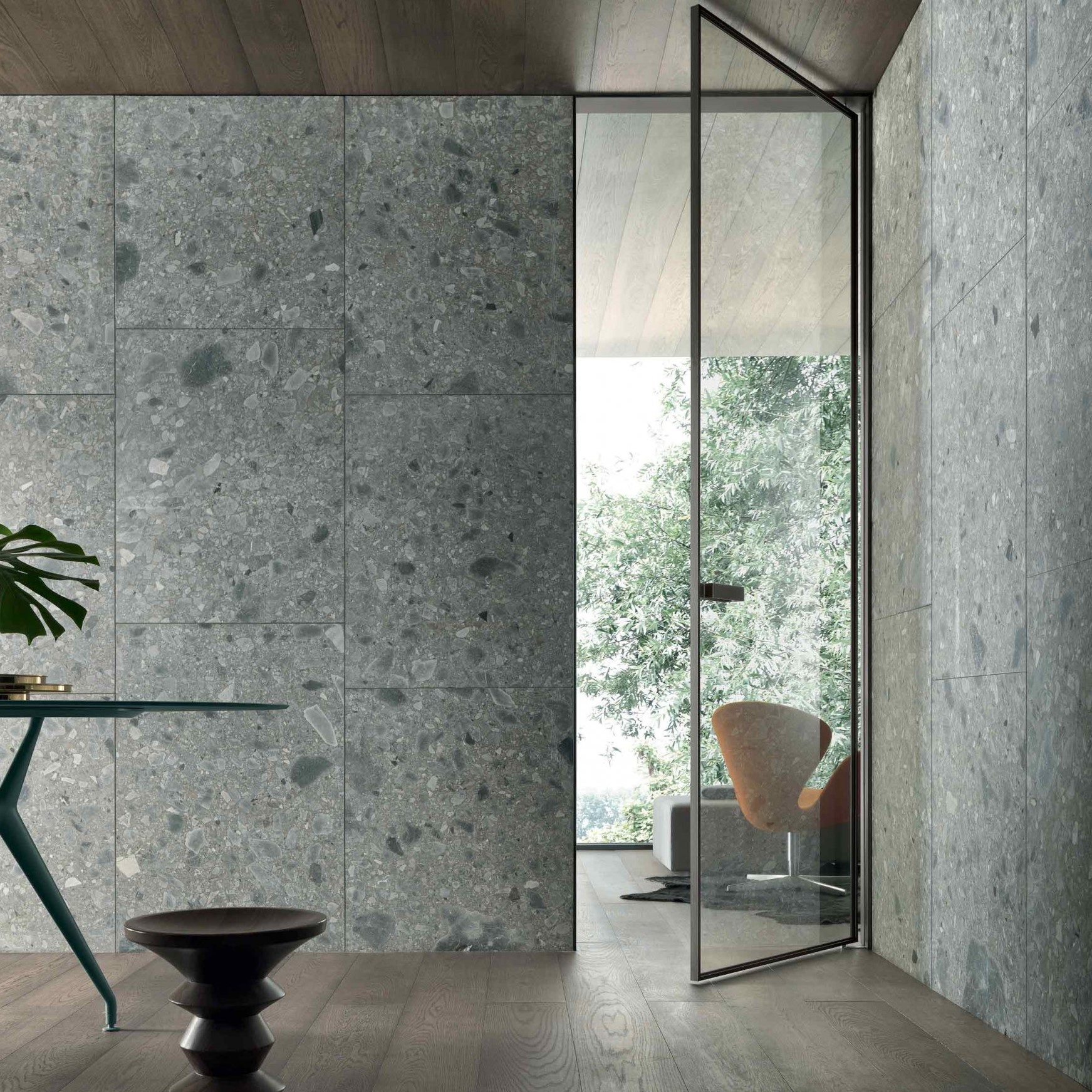 Дверь Vela открывается в обе стороны. Распашная дверь предлагается в двух вариантах исполнения: с запатентованным магнитным накладным профилем и с магнитным замком.