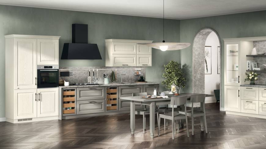 Кухня, обладающая изысканной притягательностью и духом традиций, сочетает очарование прошлого с широкими возможностями персонализации, облачающими кухню, будто платье, сшитое по индивидуальным меркам. На выбор представлена богатая гамма материалов и отделок с обновленной палитрой цветов.