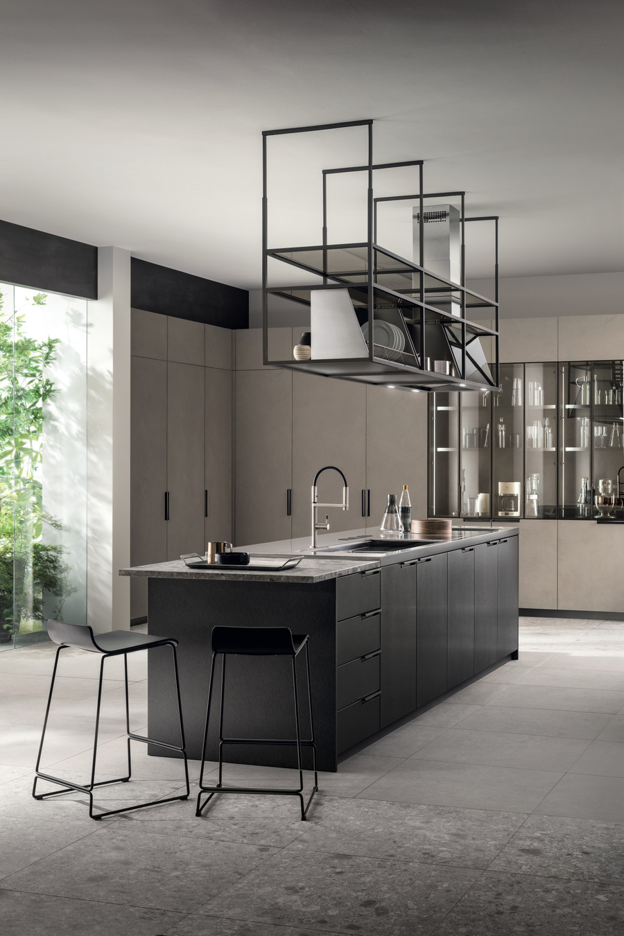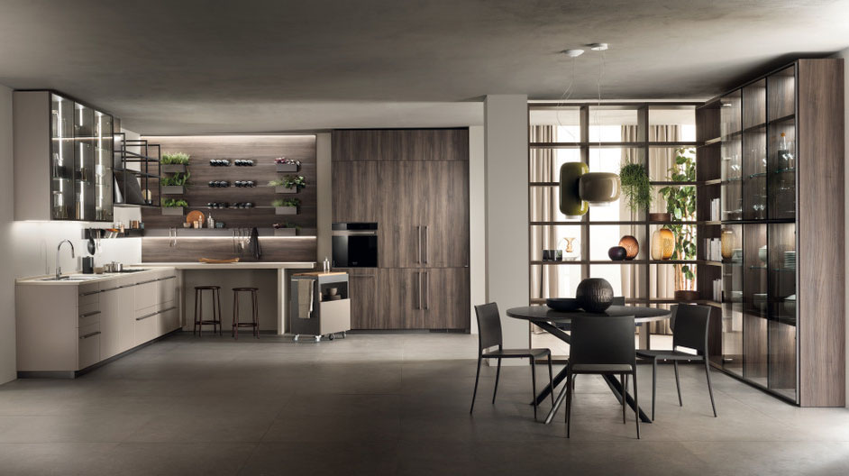 К вашим услугам многочисленные “ингредиенты”, позволяющие создать индивидуальный, “вкусный” и комфортный интерьер кухни, где сразу захочется приступить к делу: ручка с эксклюзивным дизайном, новые отделки (декоративная облицовка Дуб Известковый, Сталь темная, стекло Stopsol и Biomalta Глина), а также удивительная Система буазери, которая открывает возможности для функциональной и изысканной персонализации пространства. Особенно важную роль играет модульность интерьера, позволяющая увеличить вместимость тумб и навесных шкафов. Бытовые электроприборы, являющиеся частью композиции (например, вакуумный ящик с функции маринования, нагревающий светильник), также подчеркивают любовь и стремление к готовке, таящееся в каждом из нас. Технологичность кухни позволяет готовить изысканные блюда каждый день.