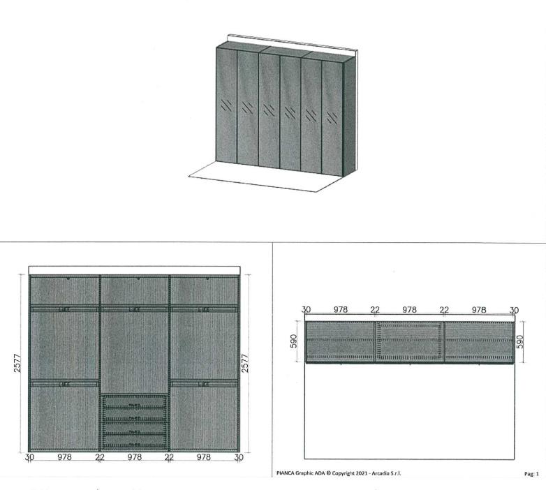 фасады-Black anodised aluminium+стекло Metallizzato bronzo, боковины-мат.лак Fango 918, полки и комод-мат.лак Dune Fango 918, внутри-Larice tortora materico