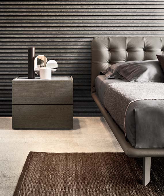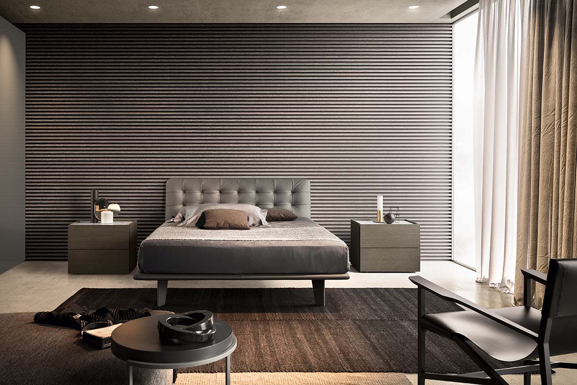 Кровать Pianca Filo выполнена с текстильной обивкой в сером оттенке, что придаёт модели современный и сдержанный характер. Изголовье украшено аккуратной стёжкой с утяжками, создающей изысканный объёмный эффект. Основание кровати выполнено с плавными линиями и тонкими ножками, подчёркивающими лёгкость конструкции.