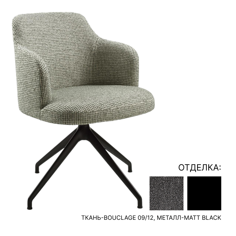 Abby con braccioli girevole ткань-Bouclage-09/12 (Cat. B), металл-Matt Black