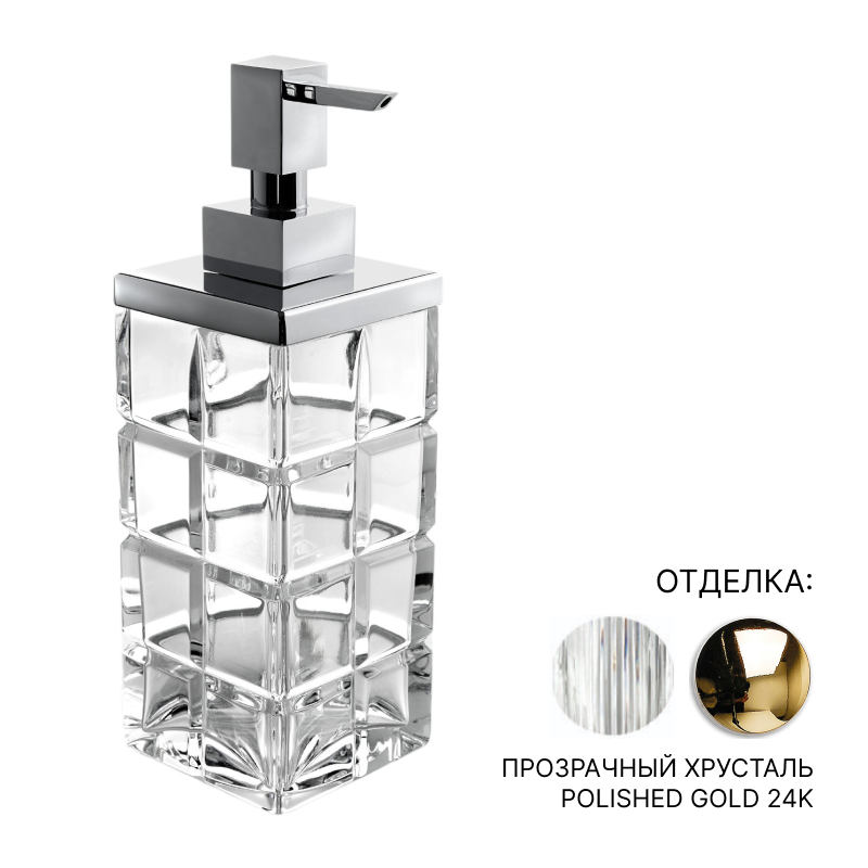 Дозатор настольный, 7,5*7,5*23h, прозрачный хрусталь/POLISHED GOLD 24K