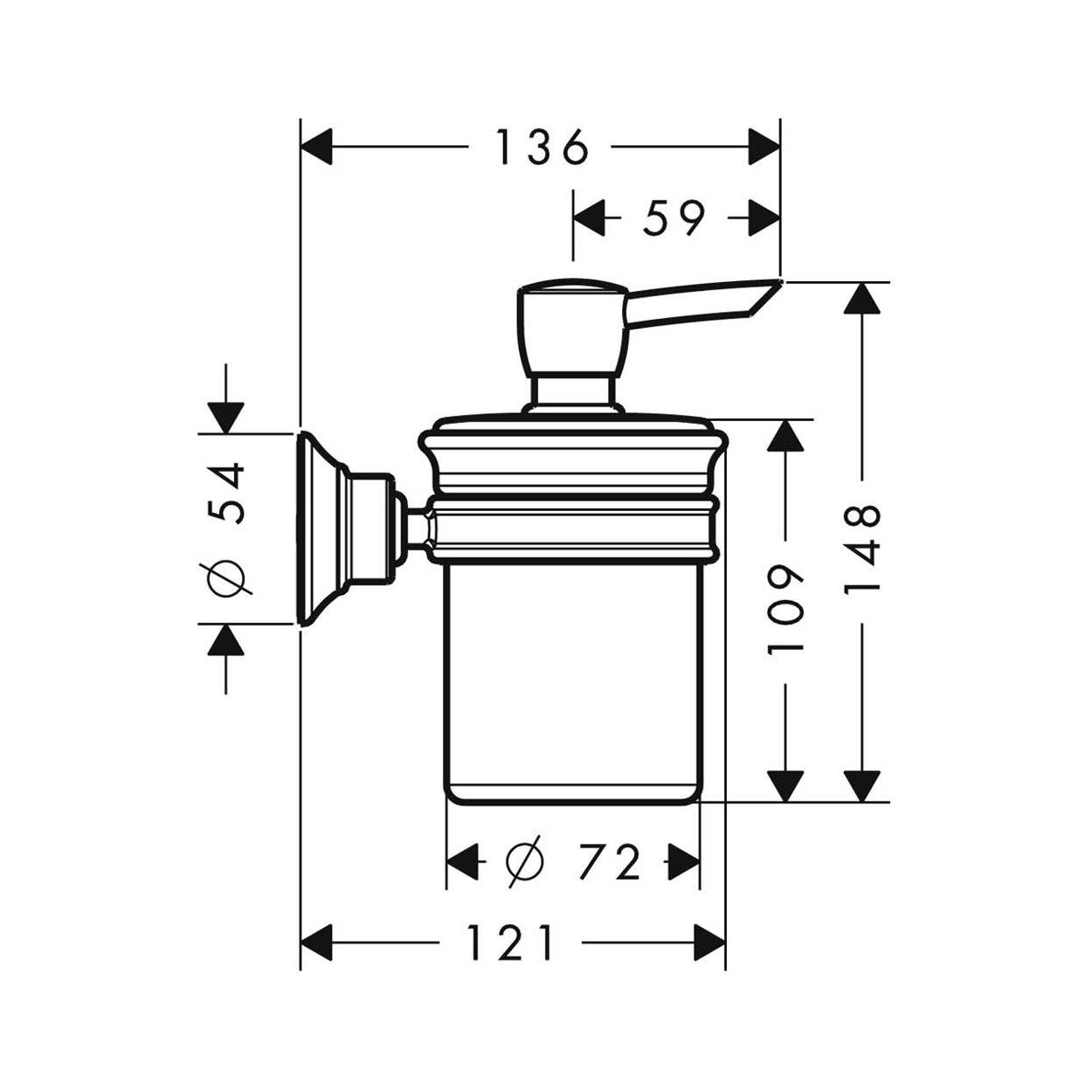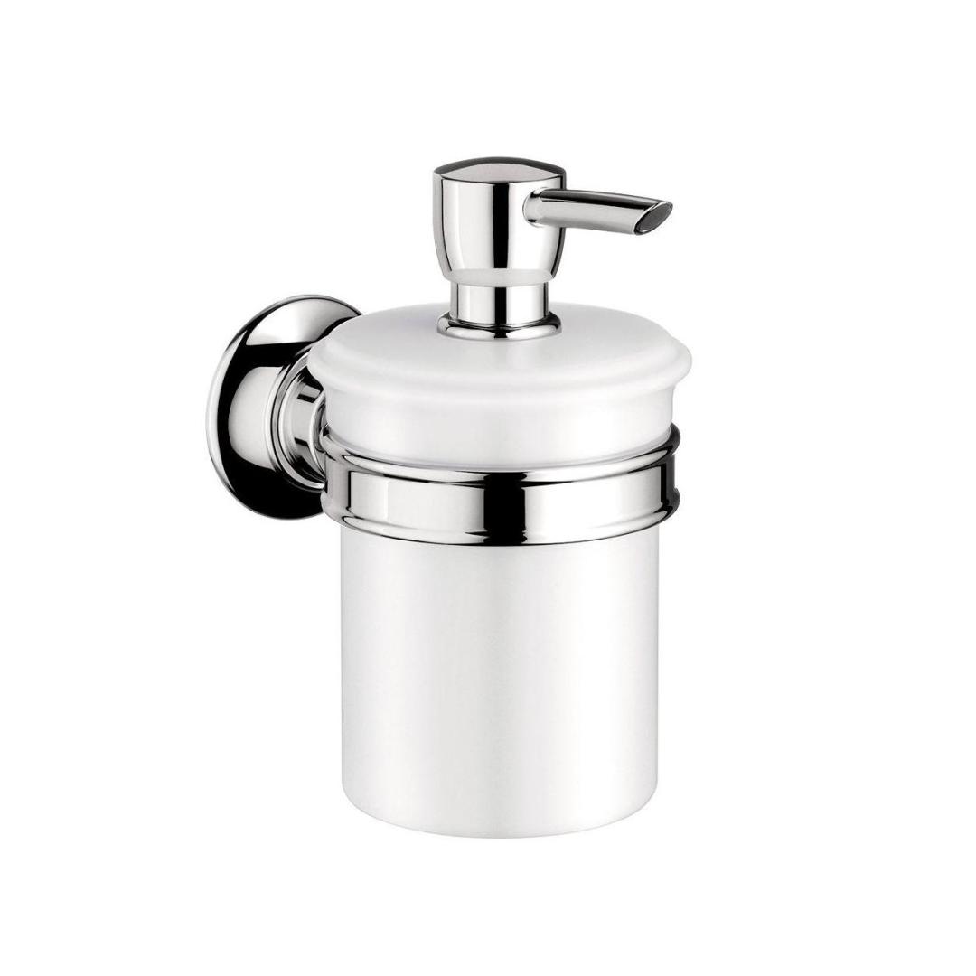 Дозатор для жидкого мыла настенный с держателем, 7.2*13.6*h14.8, хром/белый