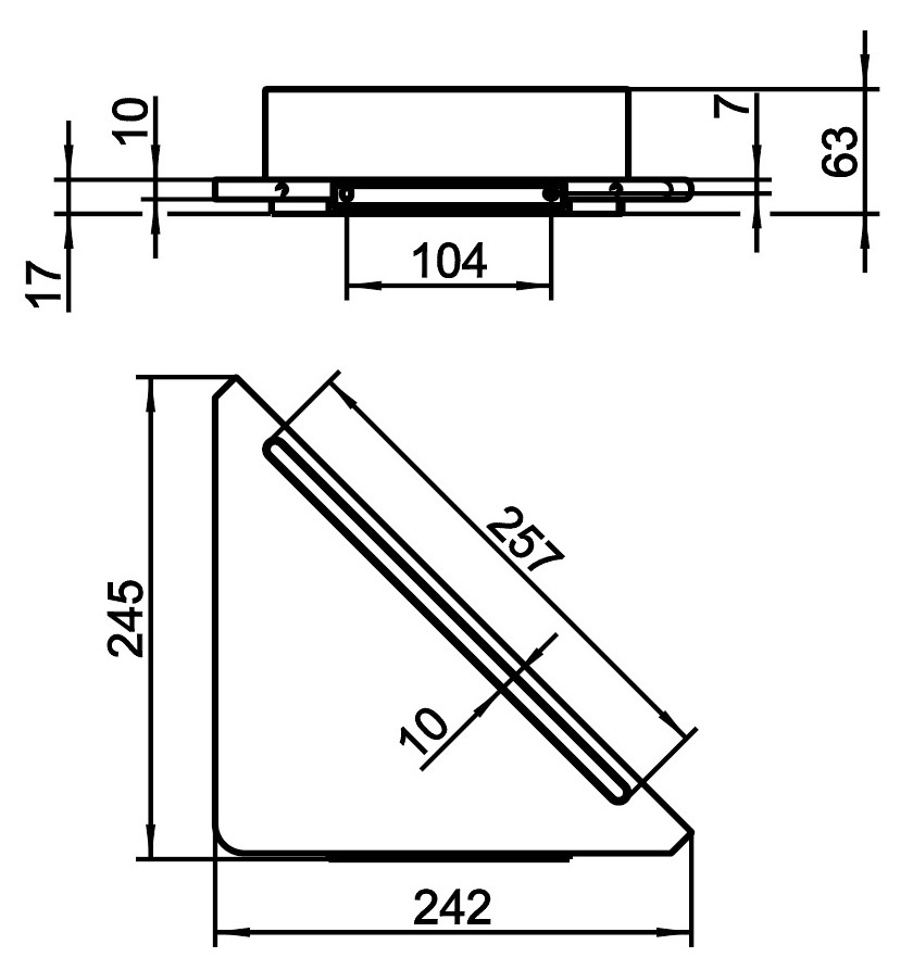Полка угловая со встроенным стеклоочистителем, 24.5*24.2*h6.3, алюминий серебристый анодированный/белый
