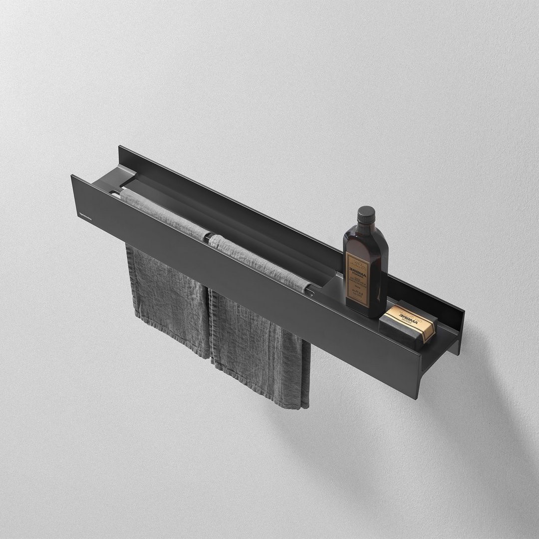 Полочка со встроенным полотенцедержателем SX, 72*13,5*9h, полотенцедержатель-45см, алюминий, цвет-NERO GOFFRATO-545. Полка для ванной Antonio Lupi LMCOMBI со встроенным полотенцедержателем выполнена в темно-сером цвете, что подчеркивает её современный и минималистичный стиль. Полка оснащена удобным пространством для хранения средств личной гигиены, а также встроенным держателем для полотенец. Её продолговатая форма и функциональный дизайн делают её удобным решением для организации пространства в ванной комнате. Эта модель отлично подойдет для современных интерьеров в стилях минимализм и лофт. Темно-серый цвет полки добавляет пространству сдержанности и строгости, при этом оставаясь нейтральным элементом, который легко сочетается с другими оттенками и материалами в интерьере.