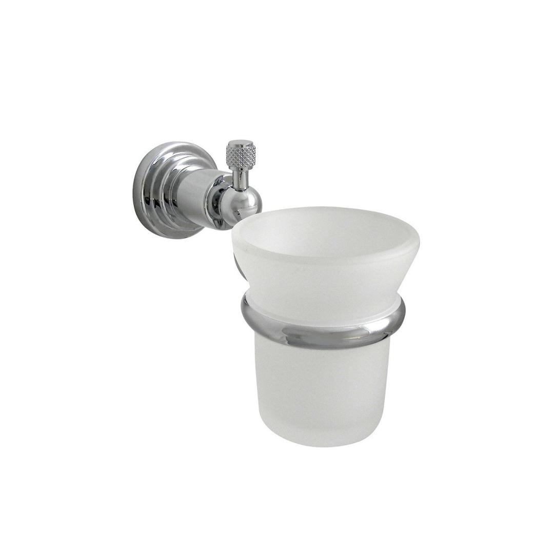 Стакан с держателем настенный, 5.3*15*h9, никель/белый