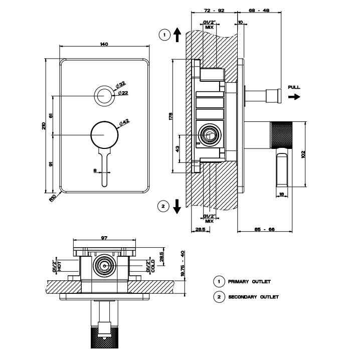 Внешняя часть встр. смесителя для душа с переключателем на 2 выхода