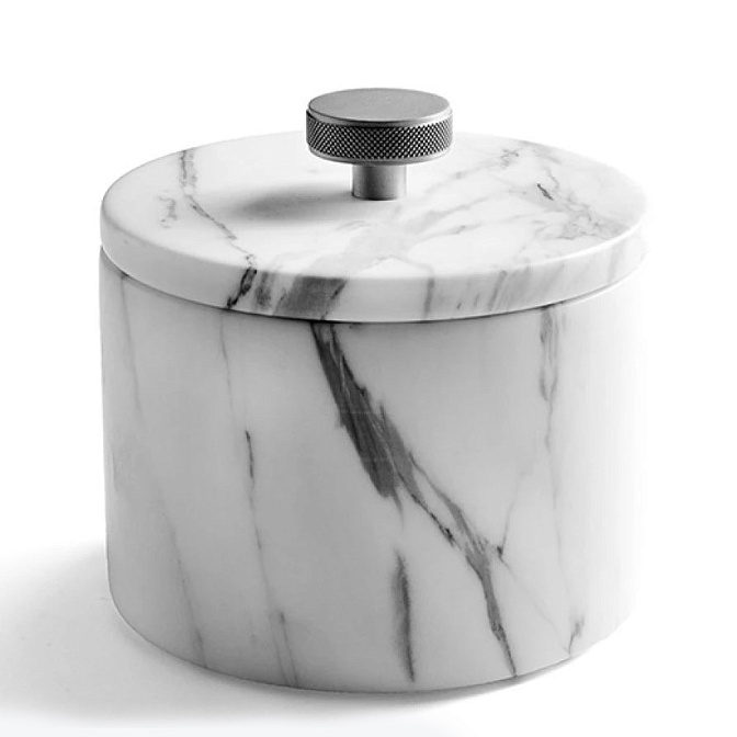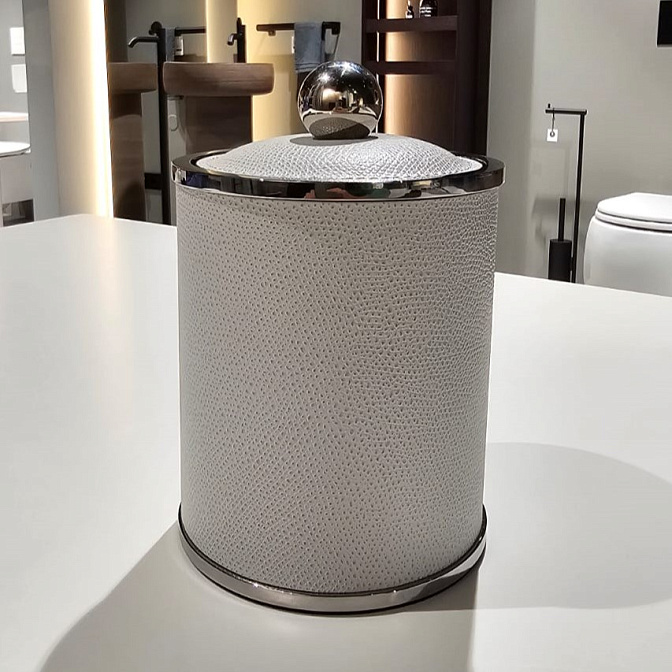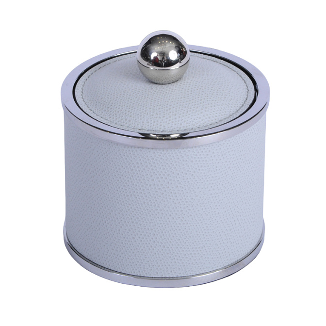 Банка с крышкой d10.7*h11 Кожа Ari 083 Light Grey/CHROMED BRASS