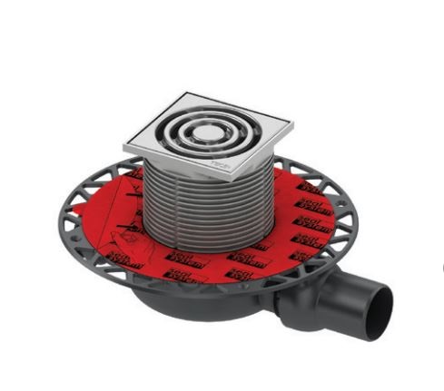 Трап горизонтальный, в комплекте с сифоном, гидрозатвор, декор.решетка 10.5*10.5, производительность 0,8-1,17 л/с полиров.нерж.сталь