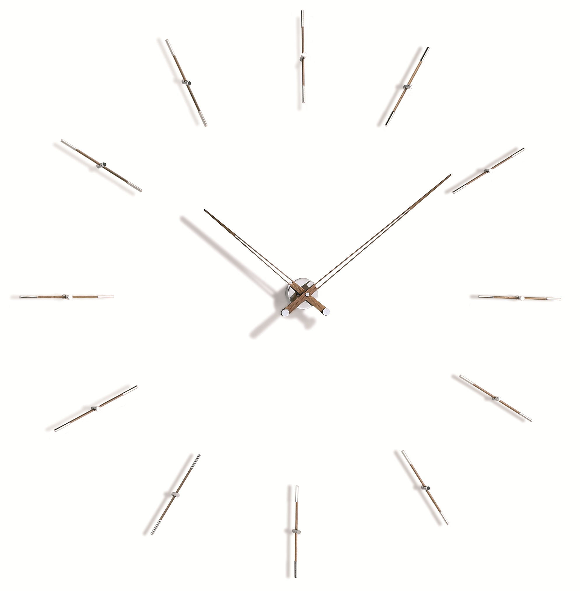 Часы настенные d.125 см Box: Chromed brass, Hands: Walnut, Time signals: Chromed brass and walnut