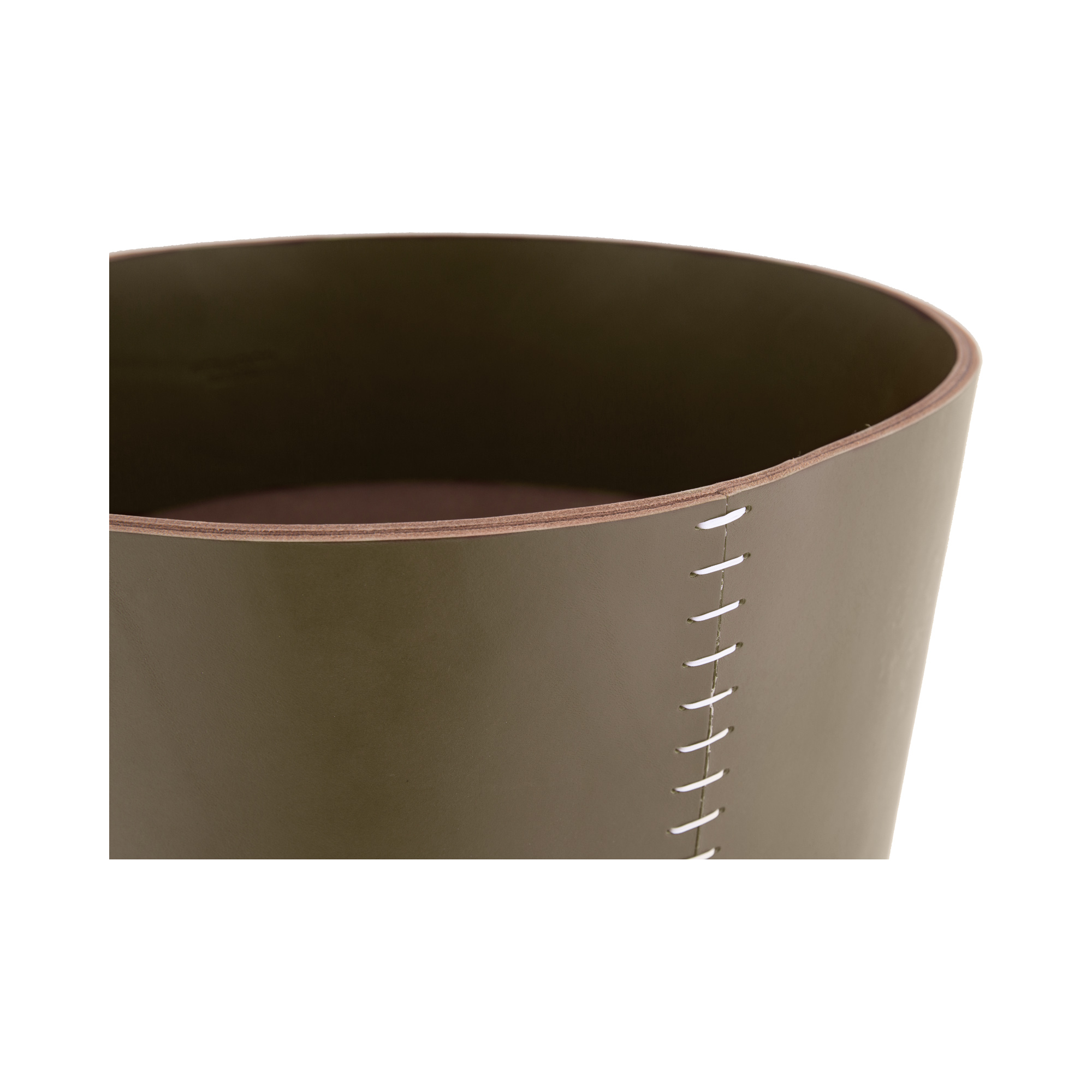 Каждая Ваза из коллекции San Diego уникальна – плотная коричневая кожа вручную обрабатывается драгоценными растительными маслами и пигментами, а затем сшивается толстой белой нитью.