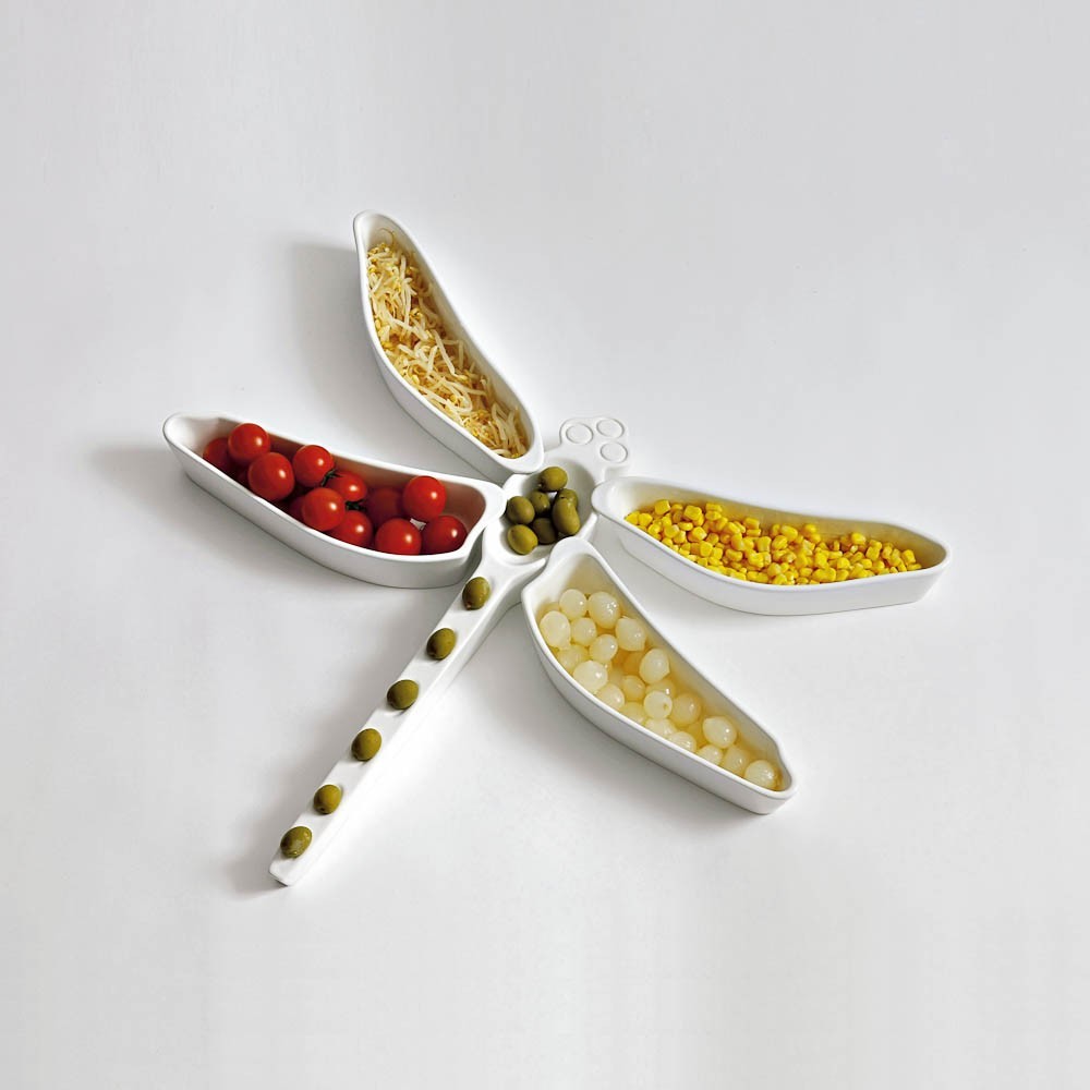 Блюдо для закусок в форме стрекозы, 45*58*5h, GLOSSY PINEWOOD GREEN-79/чаши-GLOSSY WHITE-04