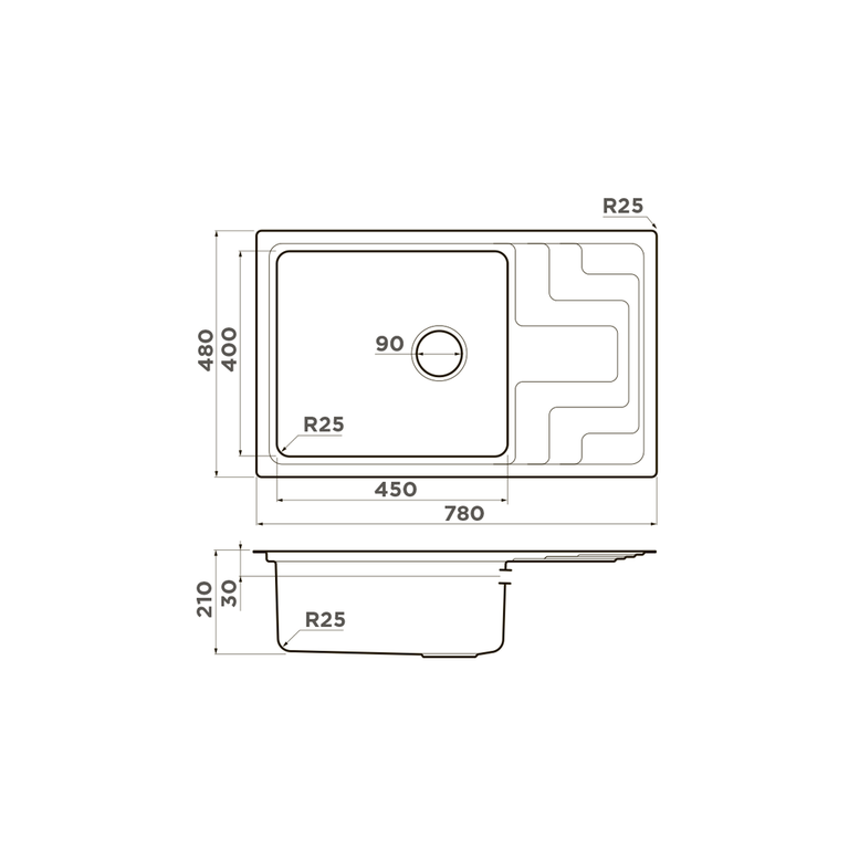 Мойка для кухни, 78*48 см, нержавеющая сталь