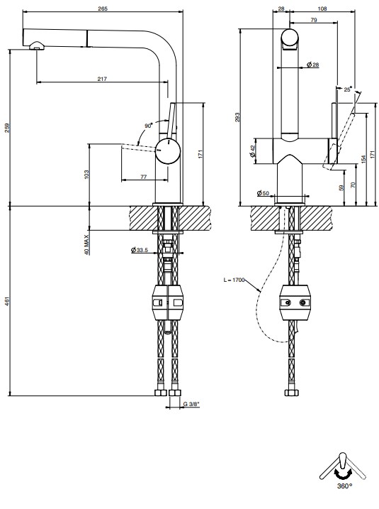 Смеситель для кухни GESSI INEDITO сочетает в себе минималистический дизайн с продуманной функциональностью. Черный цвет придает ему строгость и современность, делая акцент на простых, но выразительных формах, что идеально вписывается в модные тенденции кухонного декора. Прямая форма смесителя подчеркивает его простоту и лаконичность, в то время как монокомандное управление обеспечивает легкость в использовании. Вытяжной душ усиливает удобство, предоставляя дополнительную практичность при выполнении кухонных задач. Сделанный из прочного металла, GESSI INEDITO обещает долговечность и надежность в повседневном использовании, становясь незаменимым помощником на вашей кухне.