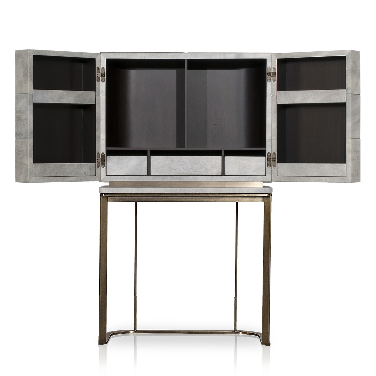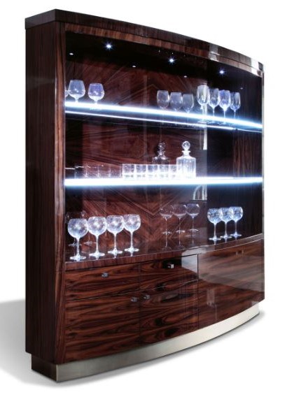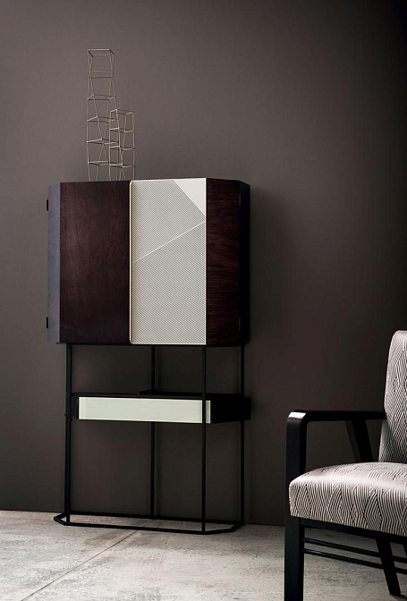 Этот предмет мог бы занять достойное место среди объектов хай-тека, но Roberto Lazzeroni решил обтянуть матовый металл дорогой кожей. BO.HEMIAN – роскошная выделка нубука с состаренным эффектом, перетекающая от светлого тона к темному – элегантно вписалась в оригинальную конструкцию этого бара, сделав его не просто предметом интерьера, а настоящим произведением искусства.