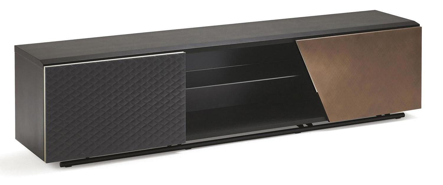 Тумба под телевизор Aston от Cattelan Italia — великолепный предмет мебели, который идеально подходит для помещений, где нужны возможности для хранения и демонстрации. Стильный силуэт отличается игривым использованием геометрии из комбинации прямых и косых линий. Замысловатая ромбовидная стежка на дверце добавляет элегантности, а внутри отделений есть достаточно места, чтобы организованно хранить вещи вне поля зрения. Верхняя часть и полки идеально подходят для демонстрации красивых предметов декора. Установите телевизор на прочную столешницу или повесьте его на стену над тумбой, чтобы достичь желаемого визуального эффекта. Изготовленная в Италии и разработанная студией STC, тумба под телевизор Aston может быть выполнена во множестве вариаций под любой дизайн интерьера. Каркас поставляется в нескольких видах металлической отделки, а двери — в разных вариантах дерева. Доступны также варианты обивки кожей и экокожей.