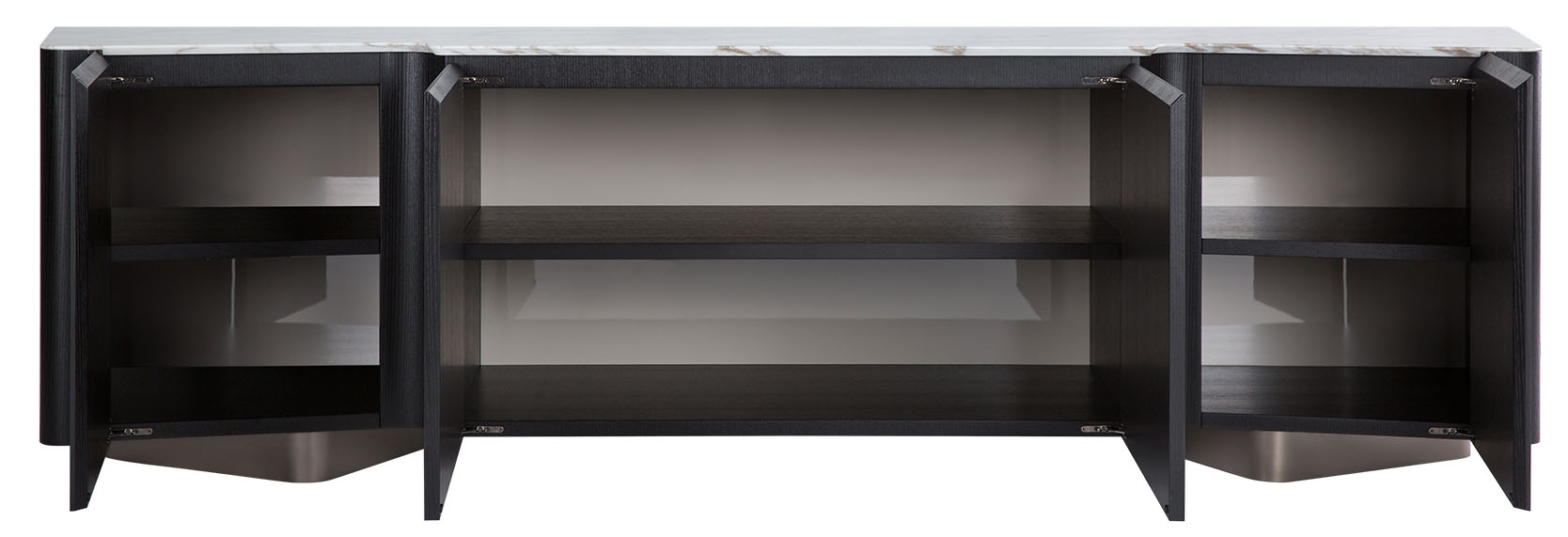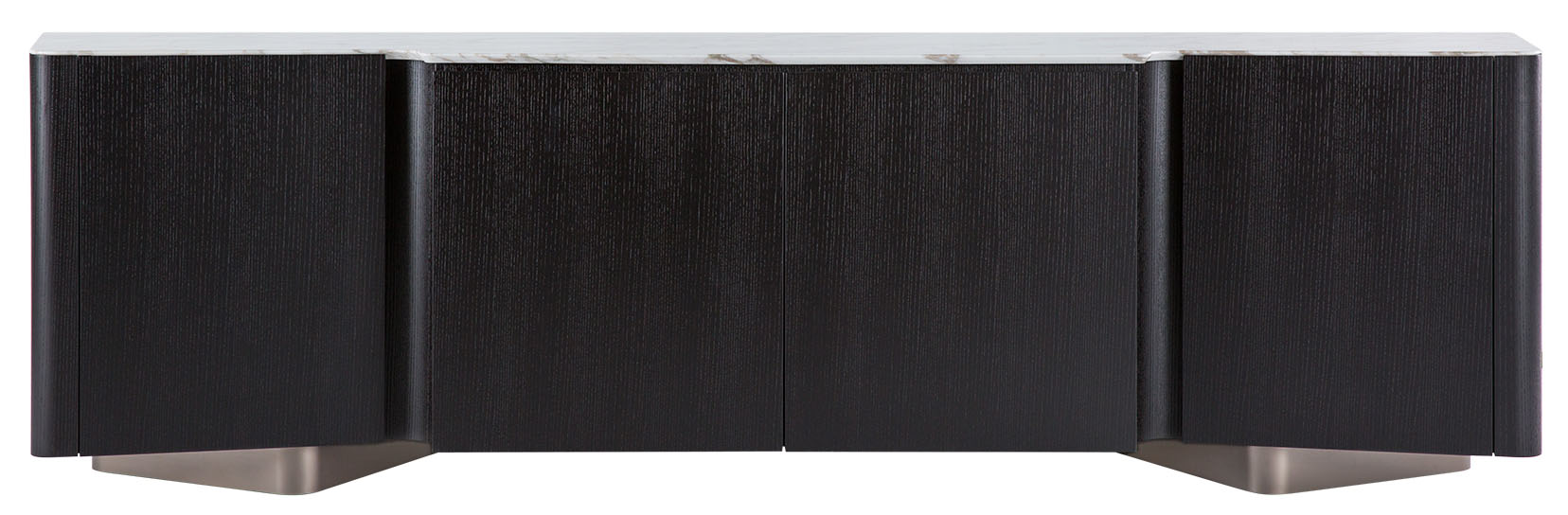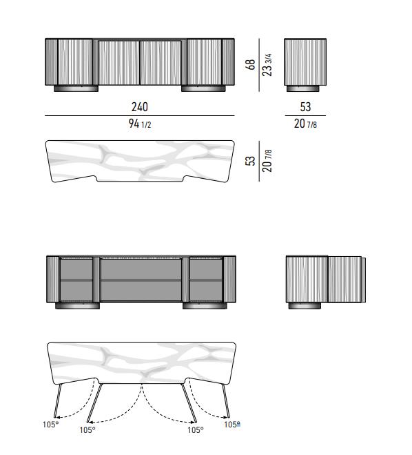 Комод LOU от MINOTTI - вещь с ярким характером! Это отличный выбор, если вам нужна та самая «изюминка» в интерьере. Смелое сочетание материалов наивысшего качества и изыска: фронтальные панели выполнены из ясеня , фактурная столешница молочного цвета - из мрамора, ножки из металла, окрашеного под бронзу.