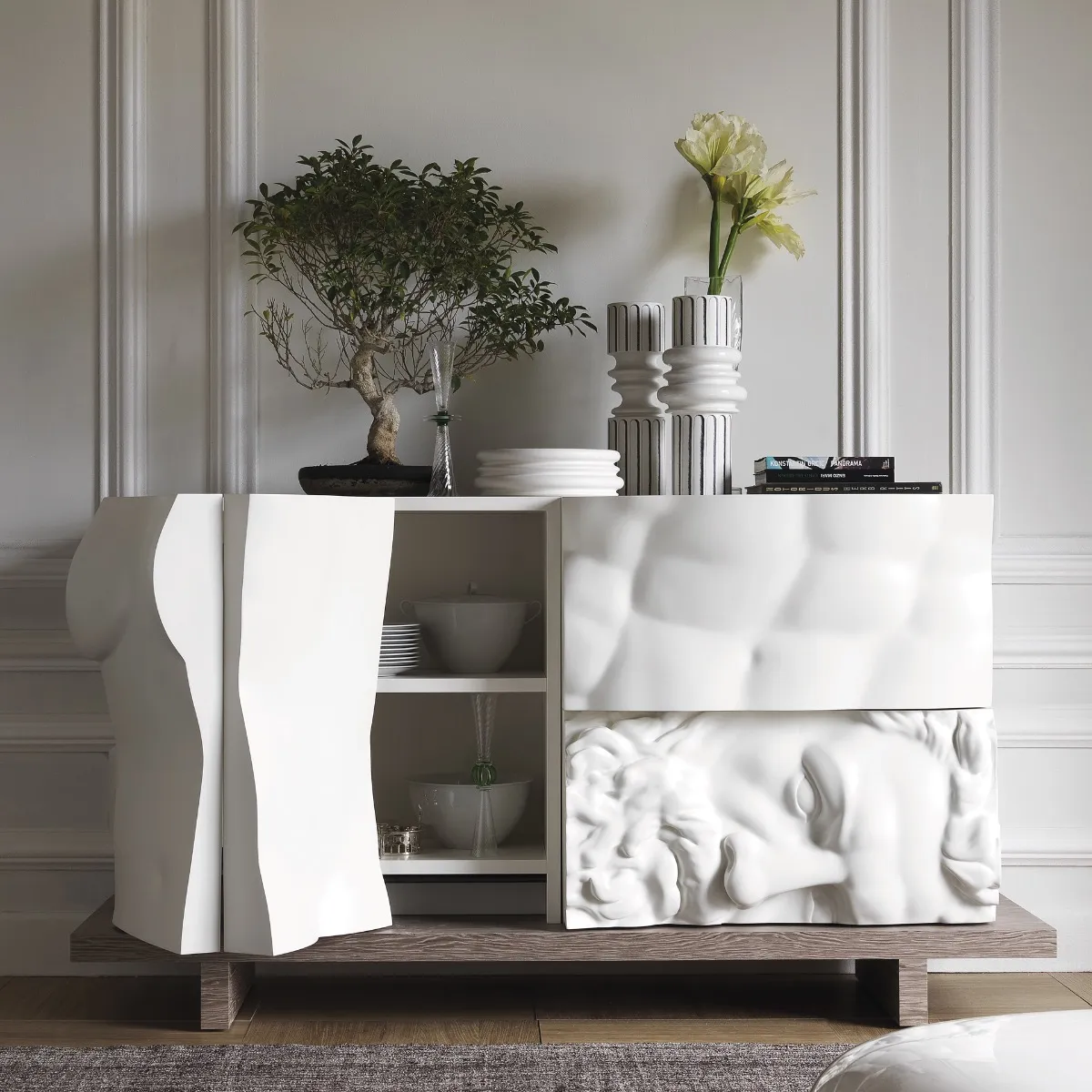основание-дерево Bleached Oak, фасады-лак Matt White Ral 9010