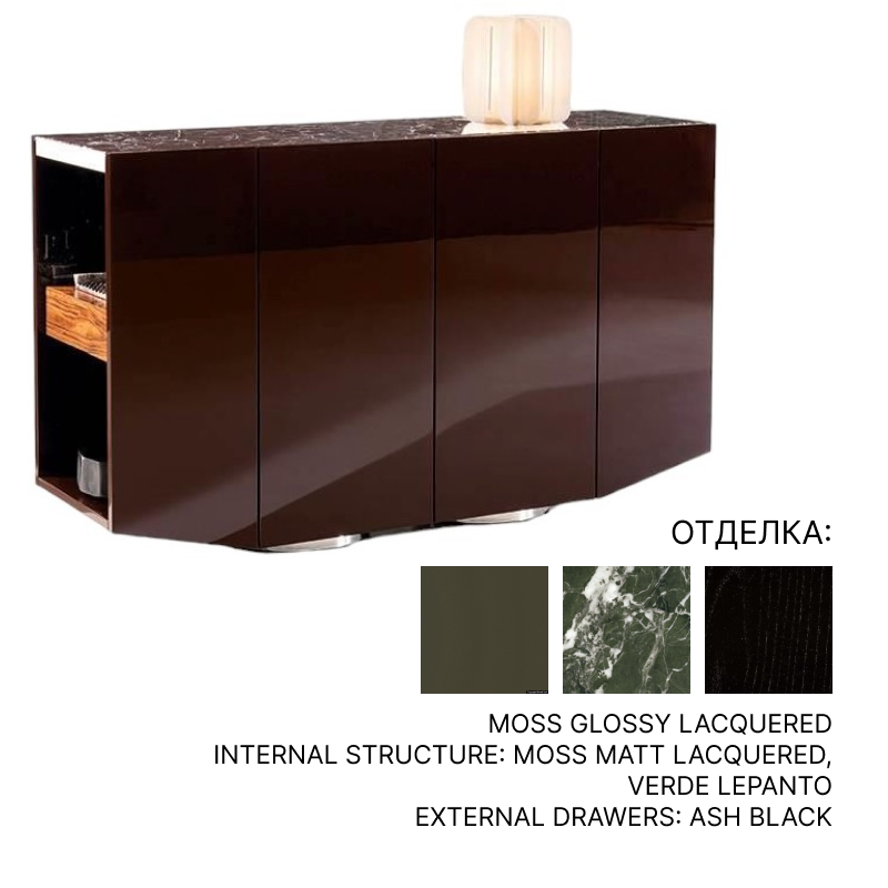 Комод 185,5*55*h109 MOSS GLOSSY LACQUERED, INTERNAL STRUCTURE MOSS MATT LACQUERED, VERDE LEPANTO, EXTERNAL DRAWERS: ASH BLACK