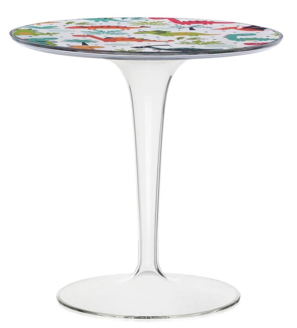TipTop – небольшой столик, который идеально спишется в интерьер детской комнаты. Центральное основание из массивного прозрачного поликарбонада поддерживает прочную круглую столешницу с ярким принтом динозавриков. Дизайн Филиппа Старка и Юджени Квитлета.