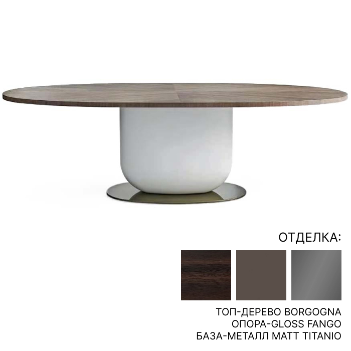 Стол 240*120*73h овальный топ-дерево BORGOGNA, опора-GLOSS FANGO, база-металл MATT TITANIO