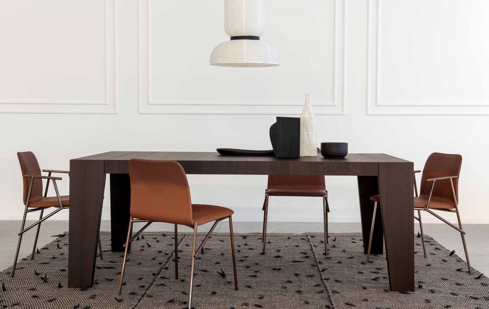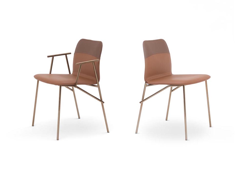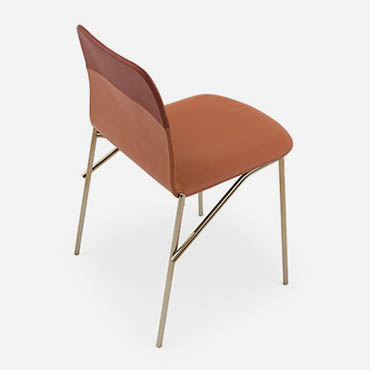 Обеденный стул Pianca Alunna, разработанный дизайнером Emilio Nanni, сочетает изящный дизайн с современными материалами. Обивка выполнена в теплых коричневых тонах, придавая стулу элегантность и уют, а металлические ножки с глянцевым покрытием добавляют модели современный и утончённый вид. Перекрещивающиеся элементы базы создают визуальный акцент, подчёркивая оригинальность конструкции.