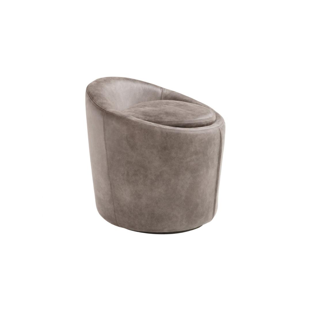Обтянутый дымчатой кожей неоднородной текстуры, этот изящный пуф станет великолепной компанией красивому туалетному столику в современной элегантной спальне.