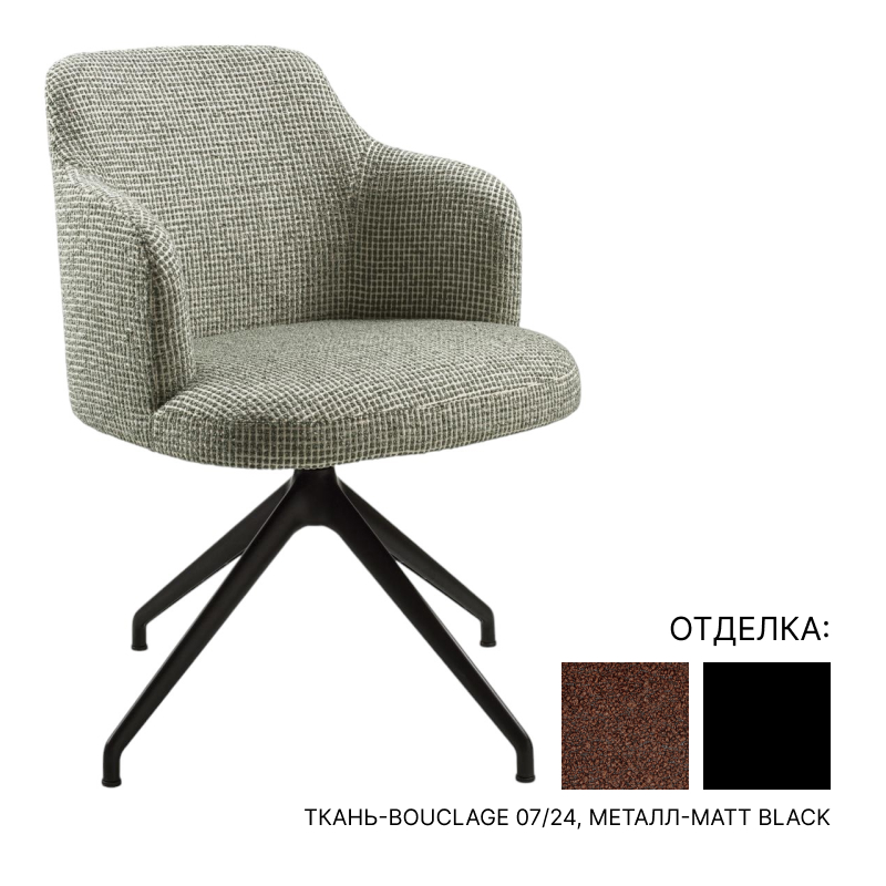 Abby con braccioli girevole ткань-Bouclage-07/24 (Cat. B), металл-Matt Black