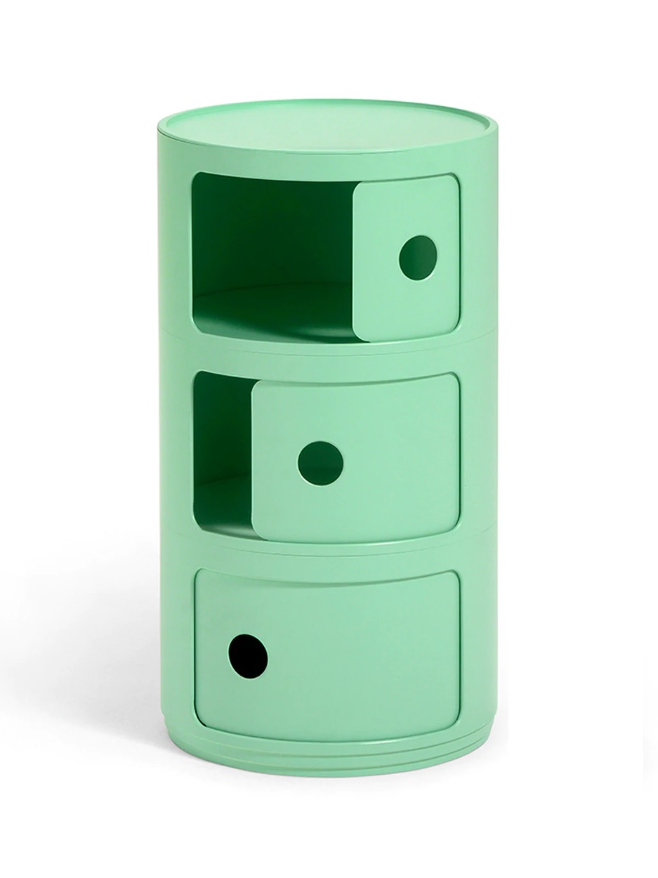 Тумба Componibili – культовый предмет интерьера с более чем 50-ти летней историей. В версии Bio воплотились все самые современные исследование Kartell. Особой биополимер, из которого выполнена тумба, изготовлен из экологичного возобновляемого сырья. Поверхность матовая, бархатистая. Нежный зеленый цвет добавит интерьеру ноту свежести.
