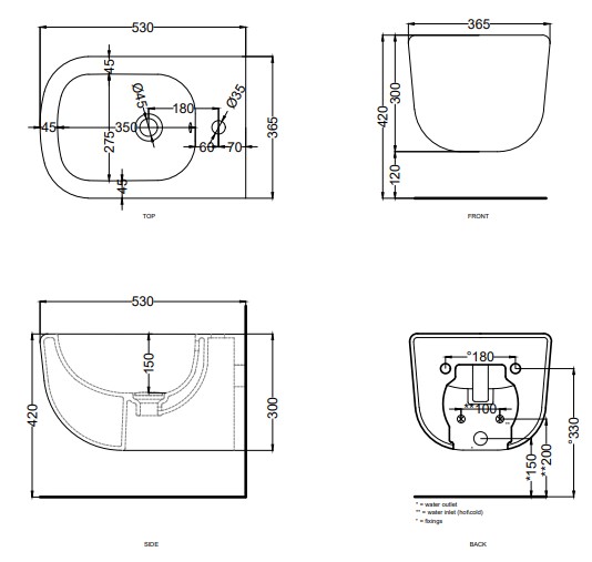Биде подвесное, 37*53*30h, Белый глянец
