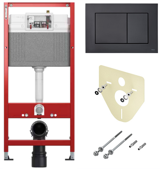 Комплект для установки подвесного унитаза (монт.стеллаж+крепл+звукоиз+панель смыва TECEnow) черный матовый
