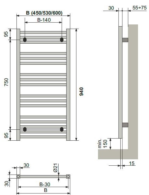 Водяной полотенцесушитель серии Bras с хромированной отделкой, отполированной до зеркального блеска, станет красивой и функциональной деталью в современном интерьере. Корпус выполнен из нержавеющего стального профиля, кронштейны для настенного крепления, заглушки и воздухозаборный клапан входят в комплект. Размер радиатора 530x940 мм.