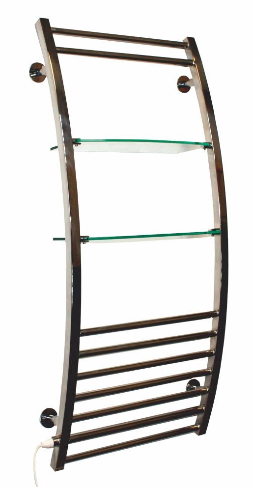 Динамичные изогнутые формы в сочетании с практичными стеклянными полками делают модель Shell одной из самых успешных в линейке бренда Neoinox. Этот полотенцесушитель водяного типа выполнен из полированной нержавеющей стали, размер – 450x1200 мм. Радиатор крепится к стене, аксессуары для подключения к системе ГВС в комплекте.