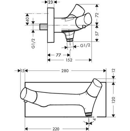 Термостат для душа настенный, 28*15.2*h12/13.2, хром