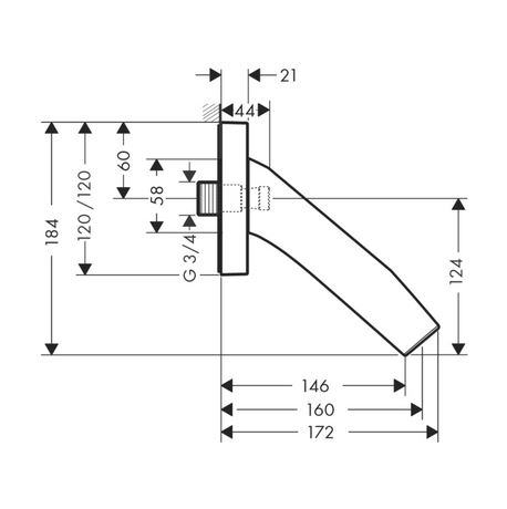 Излив на ванну прогрессивный, 12*17.2*h12/18.4, хром